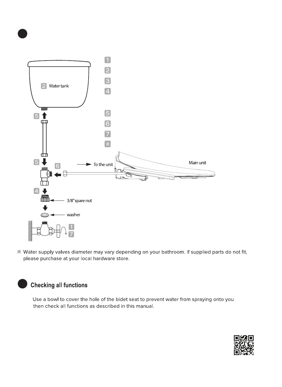 Use the 3/8” spare nut & washer if your water supply valve’s