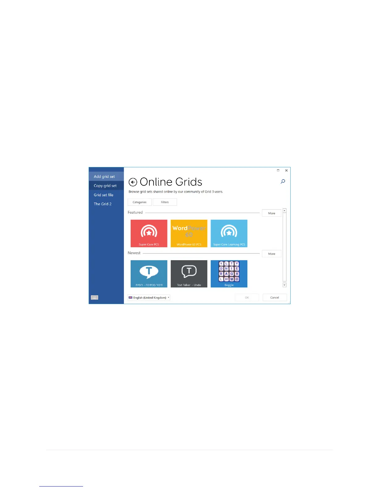 Grid set window you can search and browse shared grids from