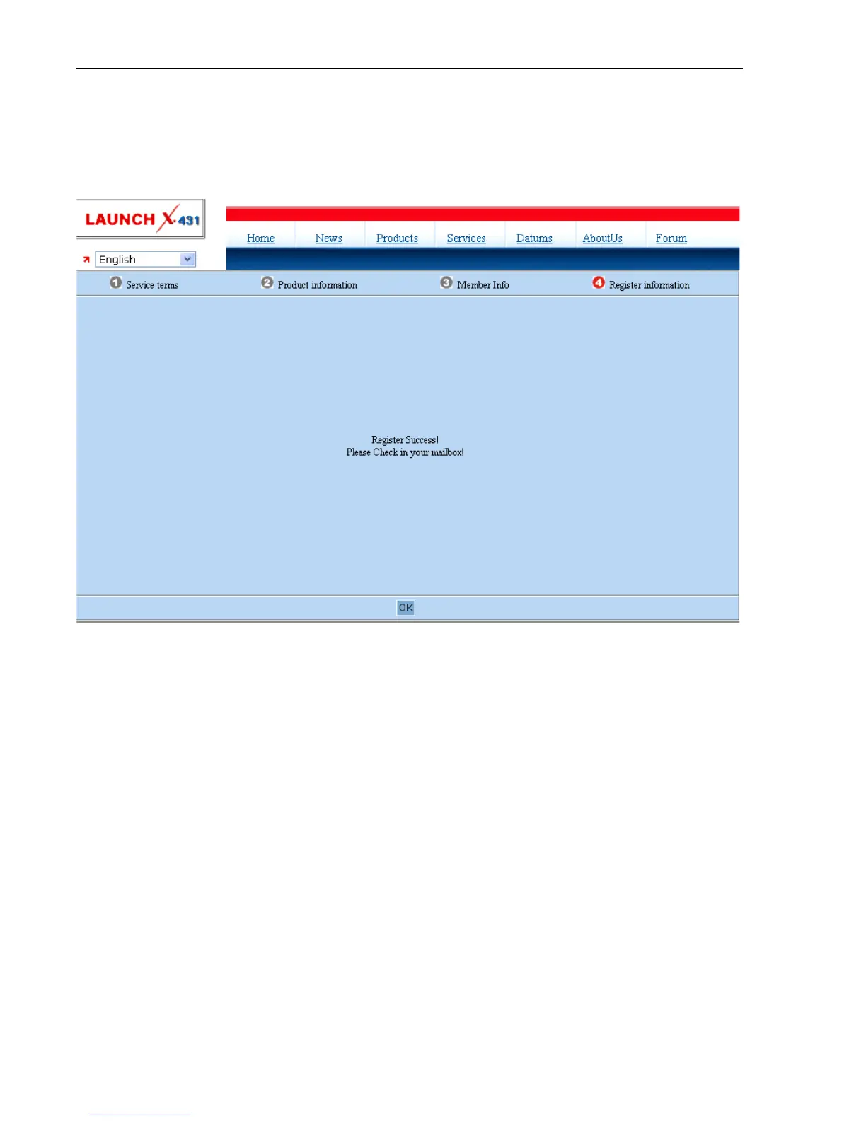 and password have been registered and sent to your email. Click OK to