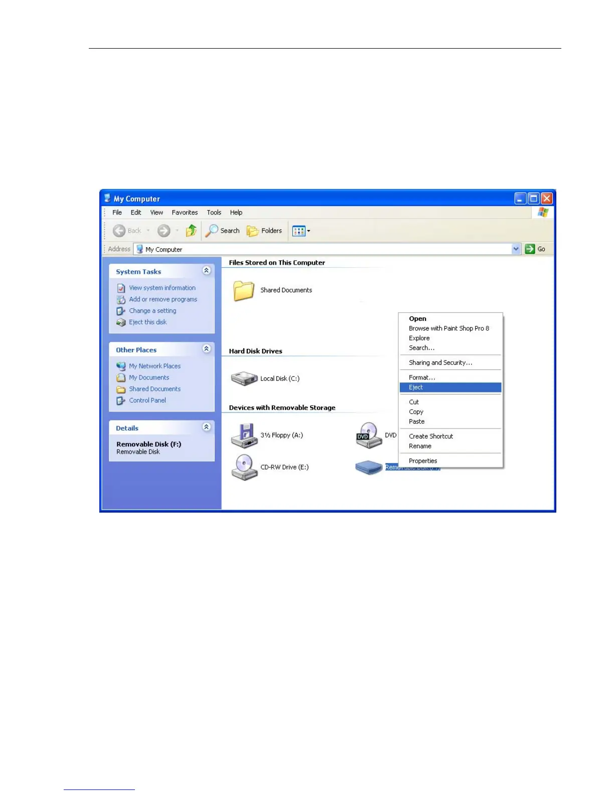 2. Right-click Removable Disk. A pop-up menu appears.Click Eject.