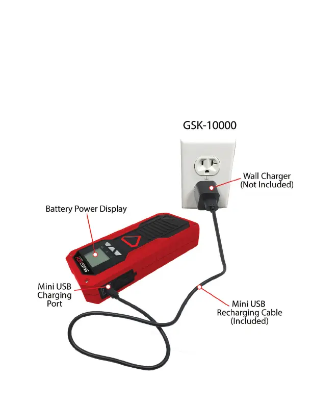 To charge the GSK-10000 internal battery, plug the Mini USB