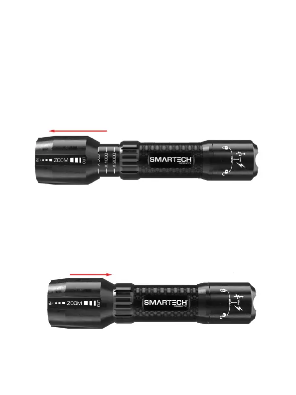To narrow the beam, pull the front of the ashlight