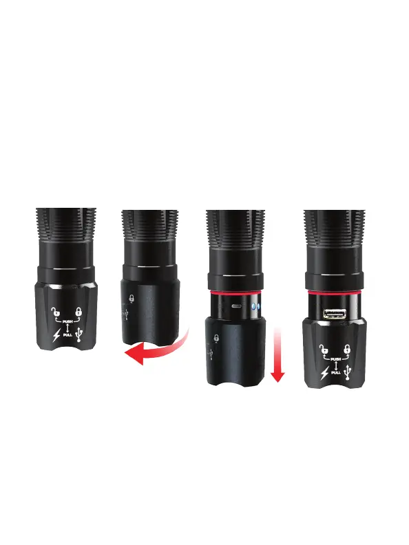 The HPR-2000 Flashlight includes a USB charge/power