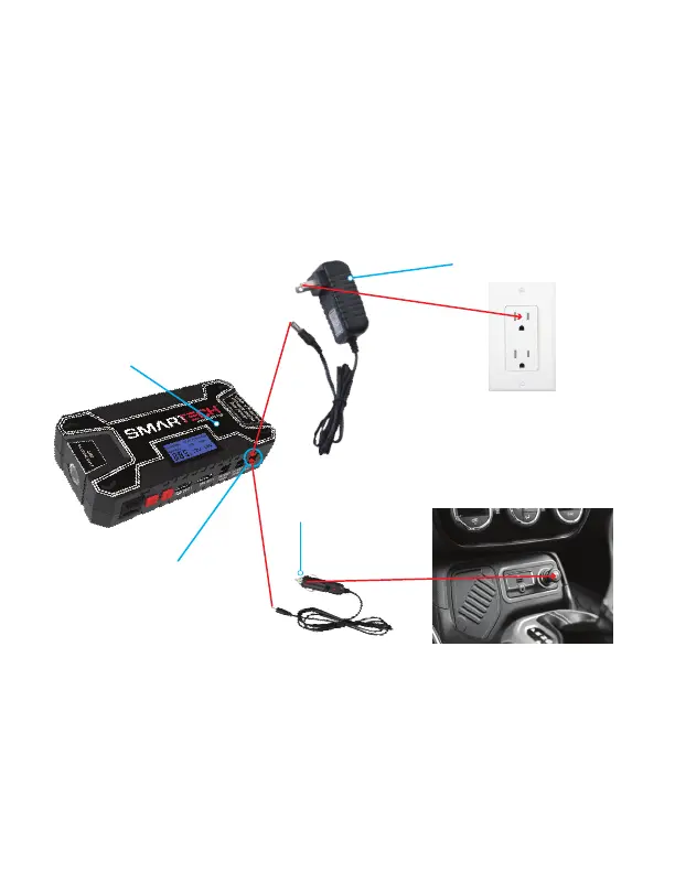 Plug one end of the 12V car charger cord into the 15V/1A Input