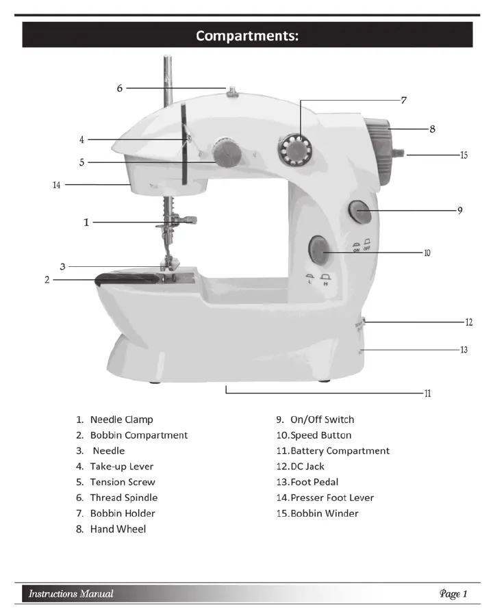 Smartek RX-08 - Sewing Machine Components Overview; Key Functional Parts; Operational Controls; Thread Management Parts