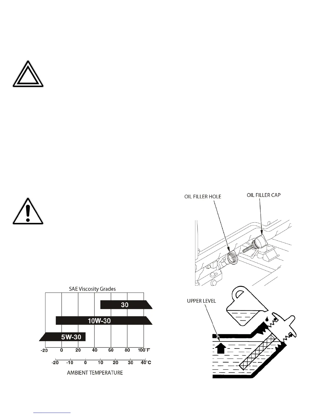 ENGINE MUST BE FILLED WITH HIGH QUALITY SAE