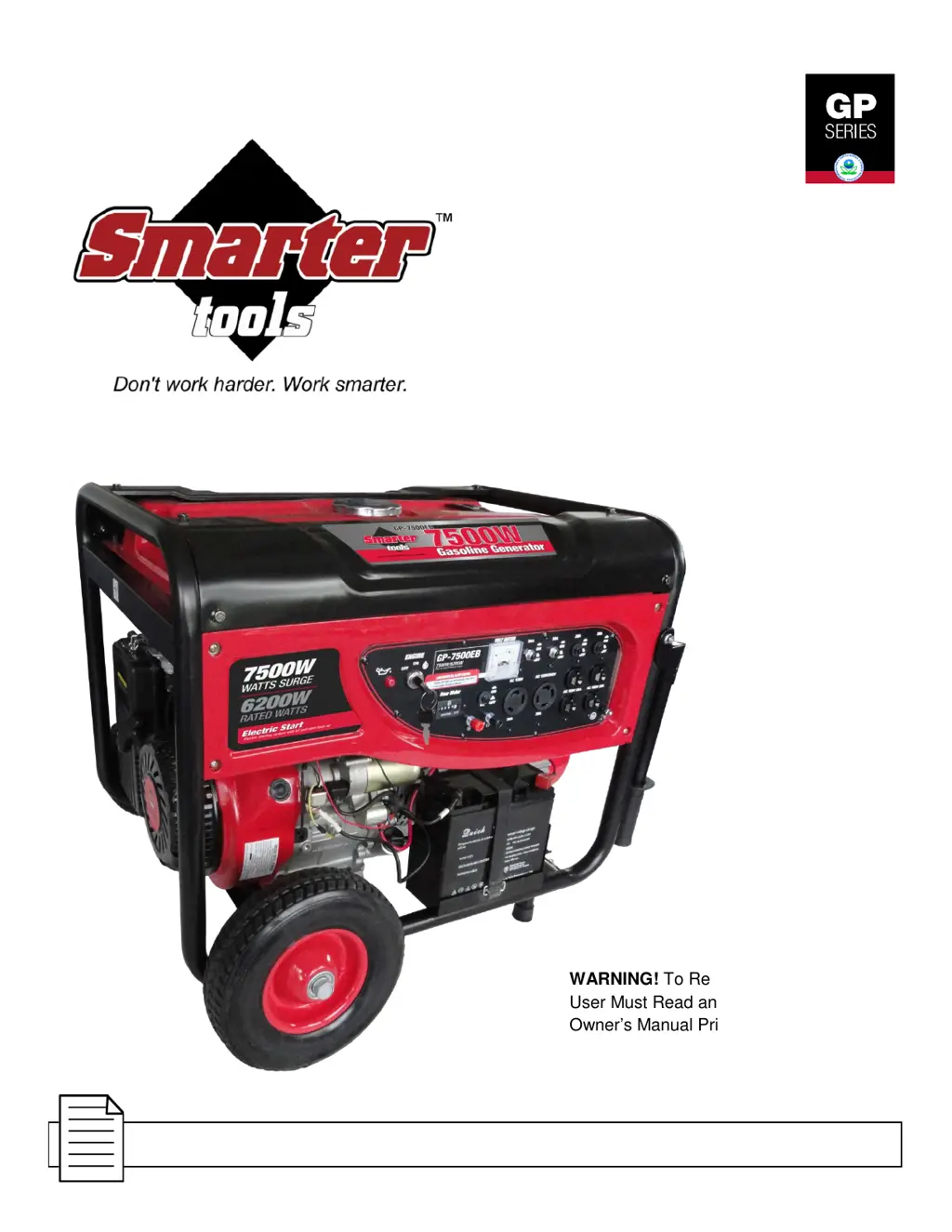 Your Smarter Tools Portable Generator might not start due to several reasons: * **No fuel**: Refill the fuel tank. * **Faulty spark plug**: Replace the spark plug. * **Unit loaded during start up**: Remove any load from the generator before starting.