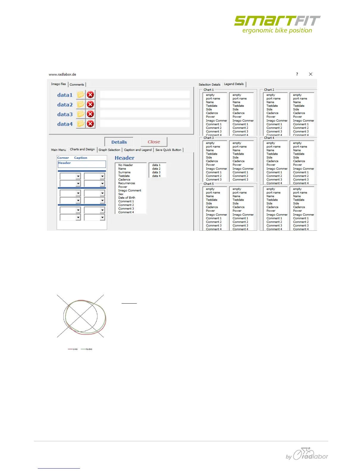 The sheet is divided into six areas, where charts can be plotted. There are also description fields