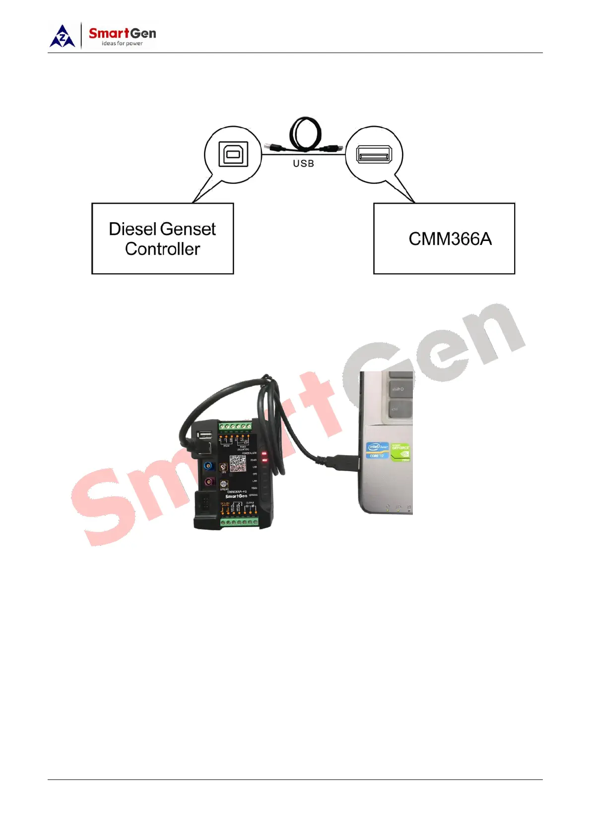 Receive genset data information by connecting module A-type USB port (female port) with Genset