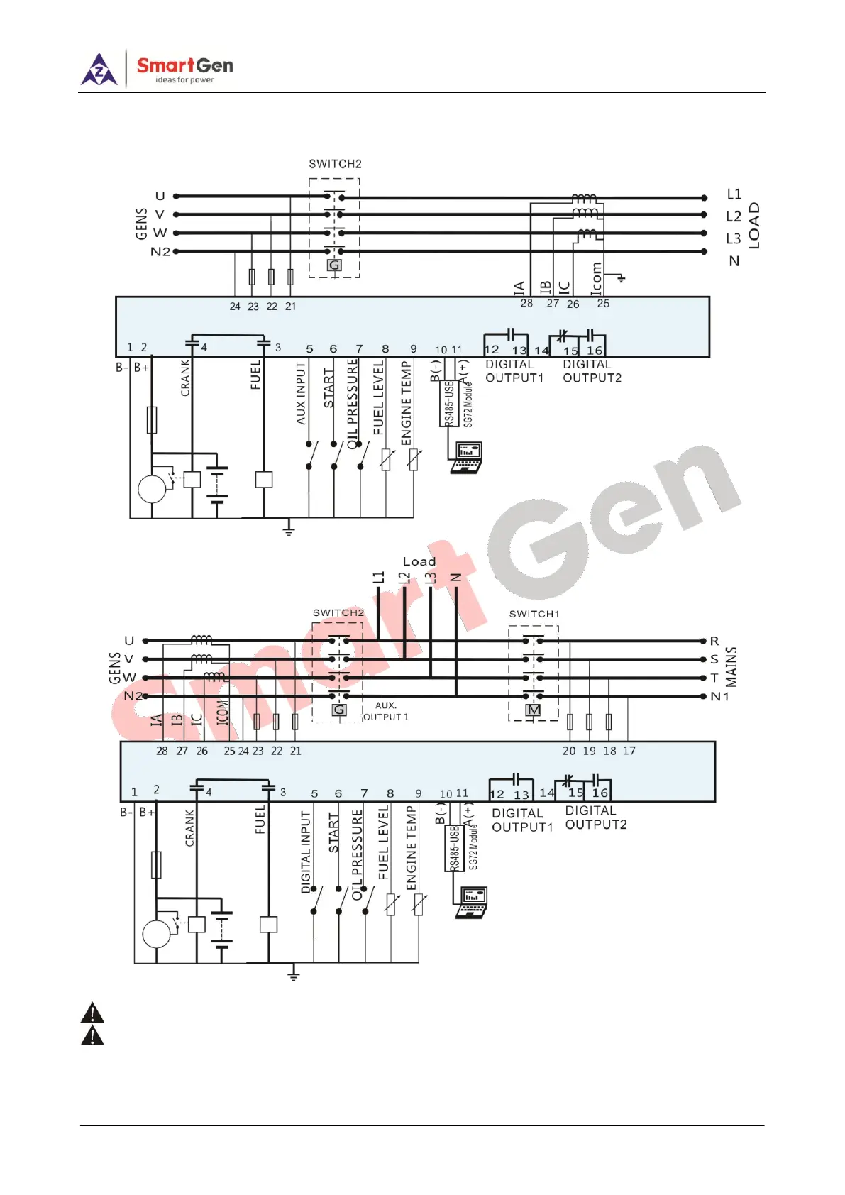 CAUTION! Crank, fuel output ports shall expand big capacity relays;