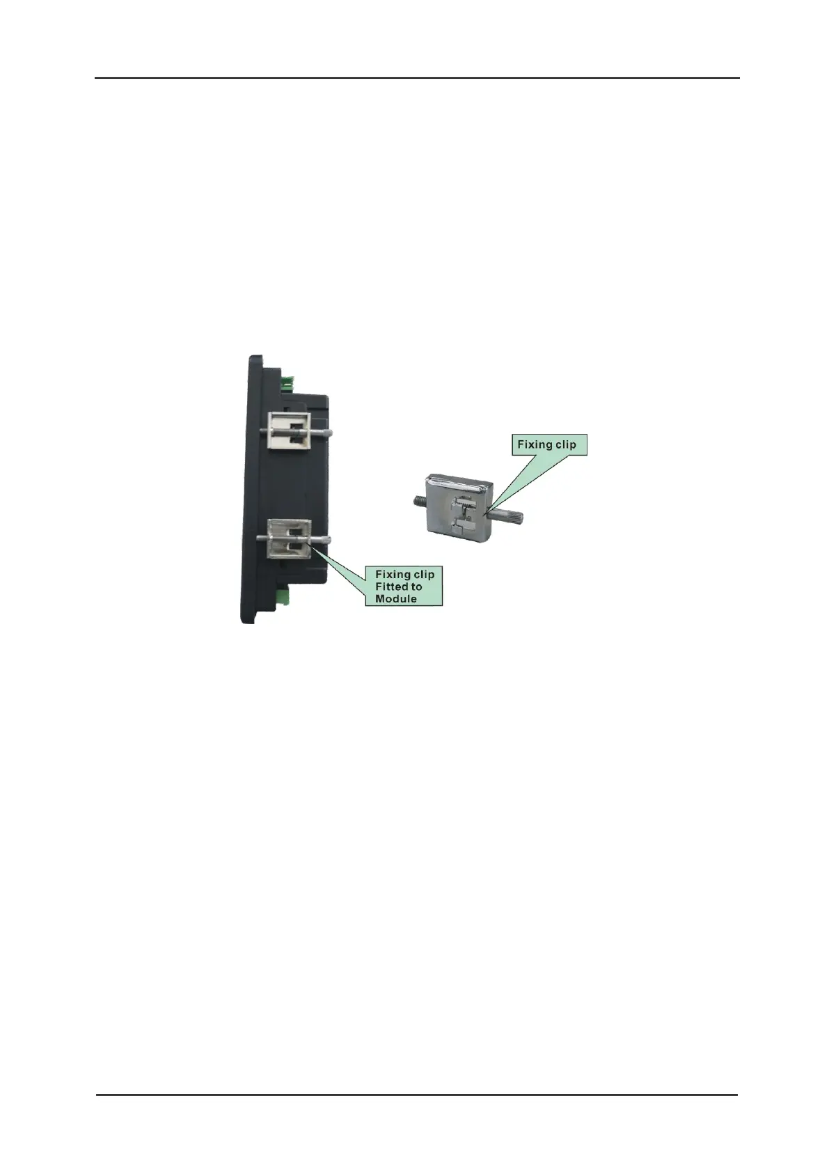 The module is held into the panel fascia using the supplied fixing clips.