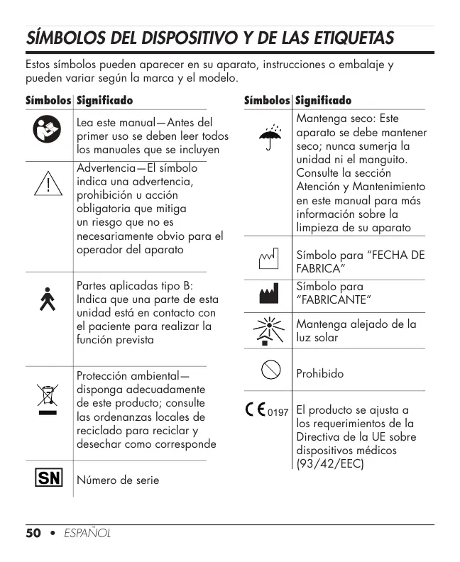 SÍMBOLOS DEL DISPOSITIVO Y DE LAS ETIQUETAS