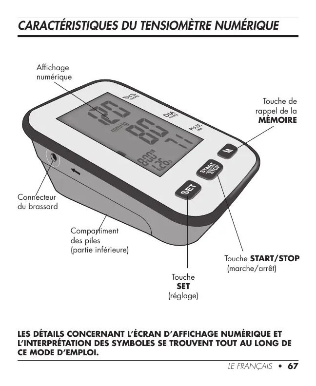 CARACTÉRISTIQUES DU TENSIOMÈTRE NUMÉRIQUE