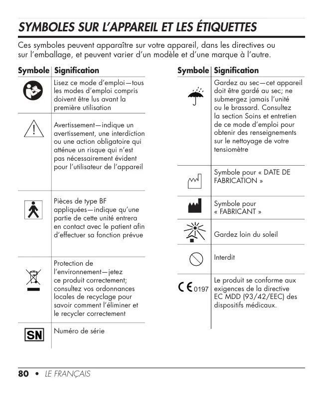 SYMBOLES SUR L’APPAREIL ET LES ÉTIQUETTES