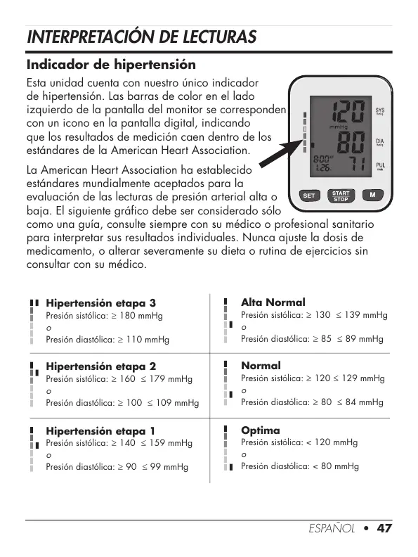 de hipertensión. Las barras de color en el lado