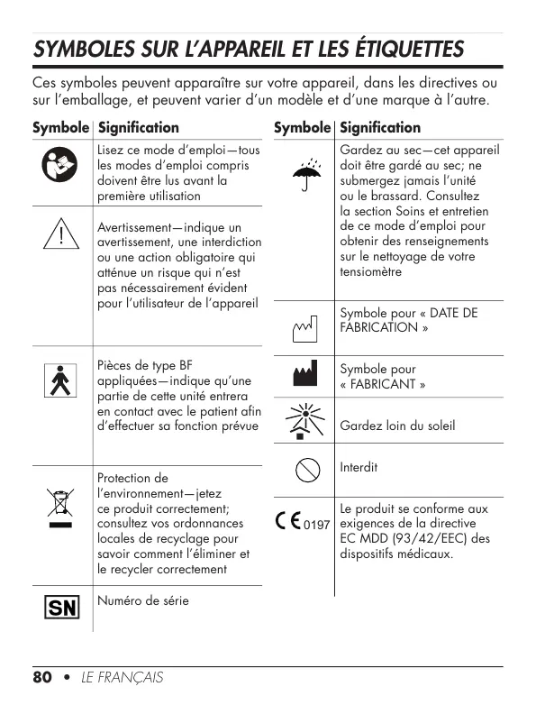 SYMBOLES SUR L’APPAREIL ET LES ÉTIQUETTES