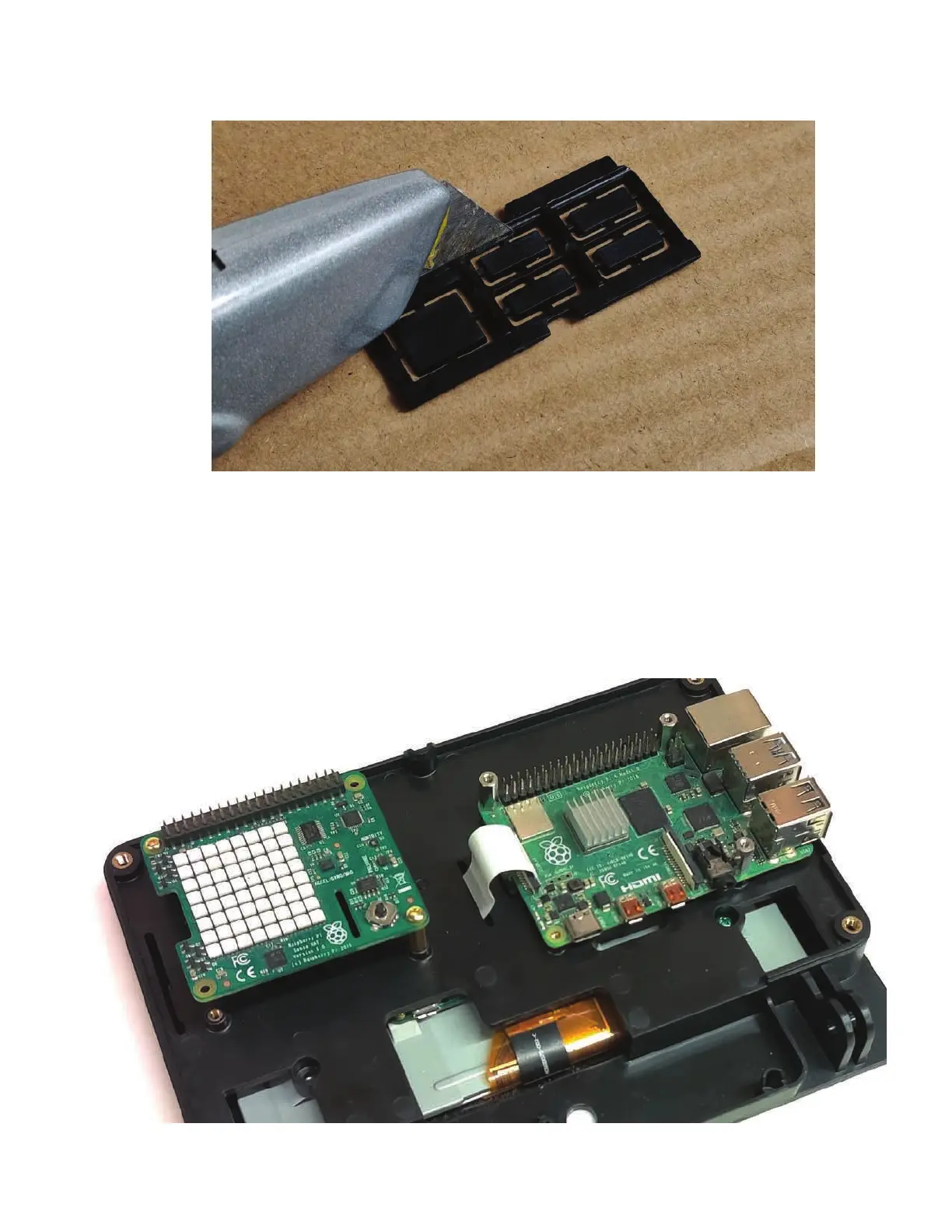 Assemble the port block part and the Raspberry Pi at the same time to the display housing. Use