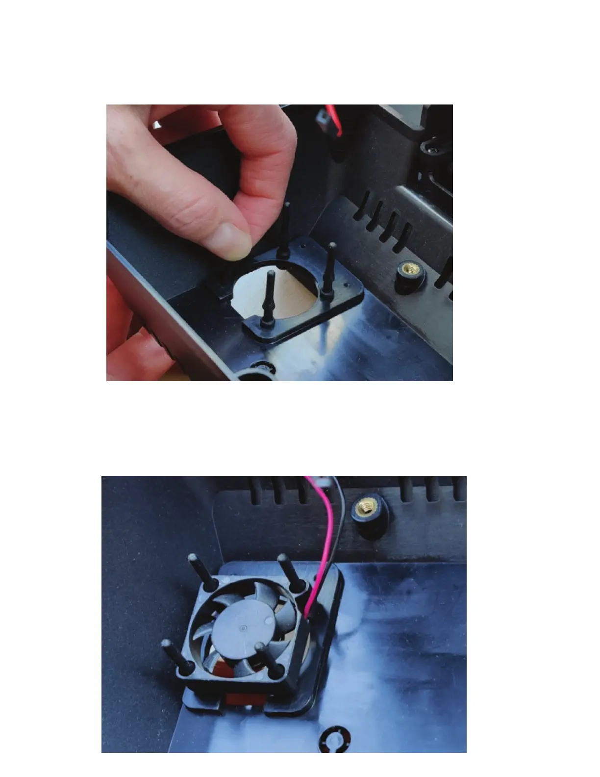If you choose to use the fan , attached the small rubber vibration mounts to the holes in the back cover