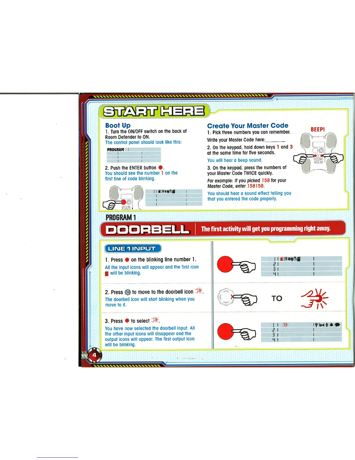 SmartLab room defender - Doorbell; Bootup; Create Your Master Code; Line 1 Input