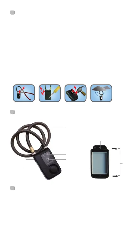 Vibrating or moving the lock triggers alarm for 30 seconds.