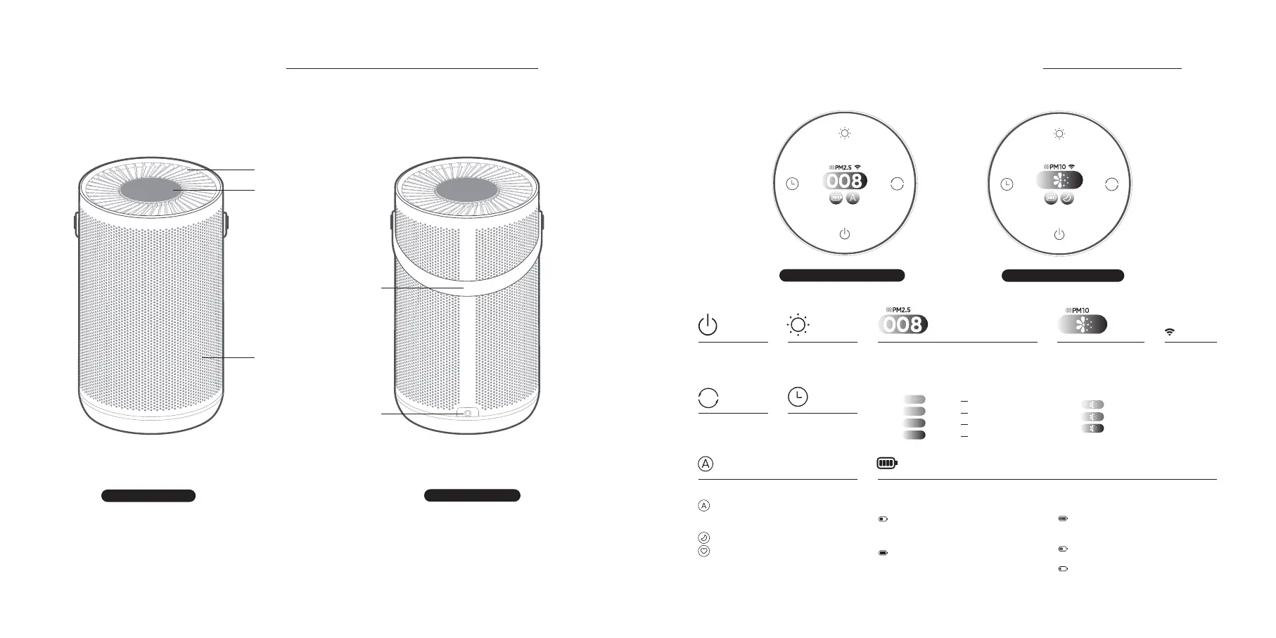Achage de la valeur PM2,5 Voyant Wi-FiBouton marche/