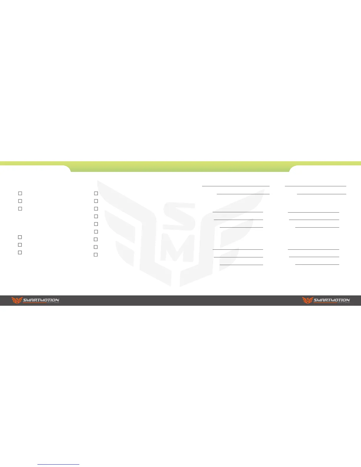smartmotion Essence - Service Checklist; Service Record