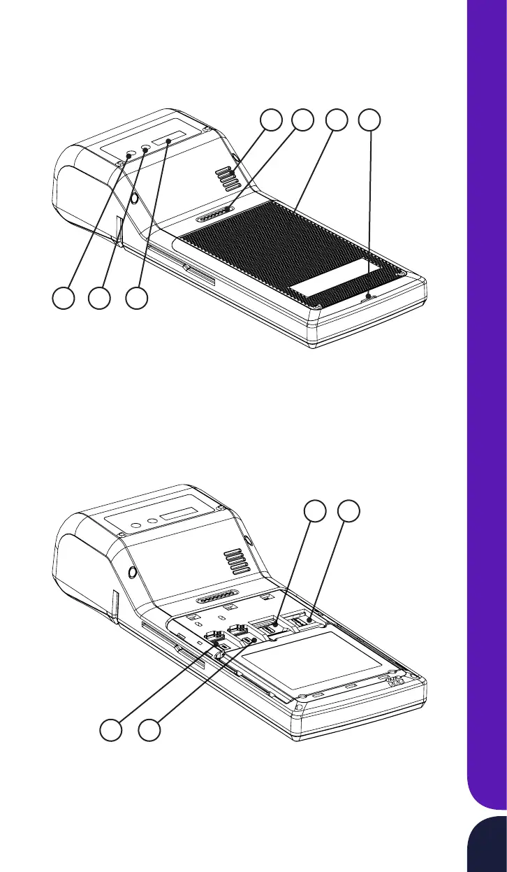 1 – PSAM card slot; 2 – microSD card slot; 3 – SIM1 slot;