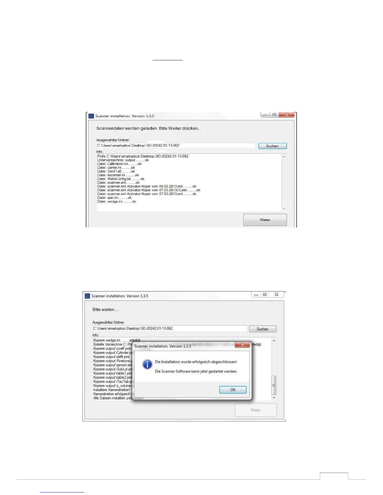 The scanner installation has been completed; you can close the installer with "OK" and restart the