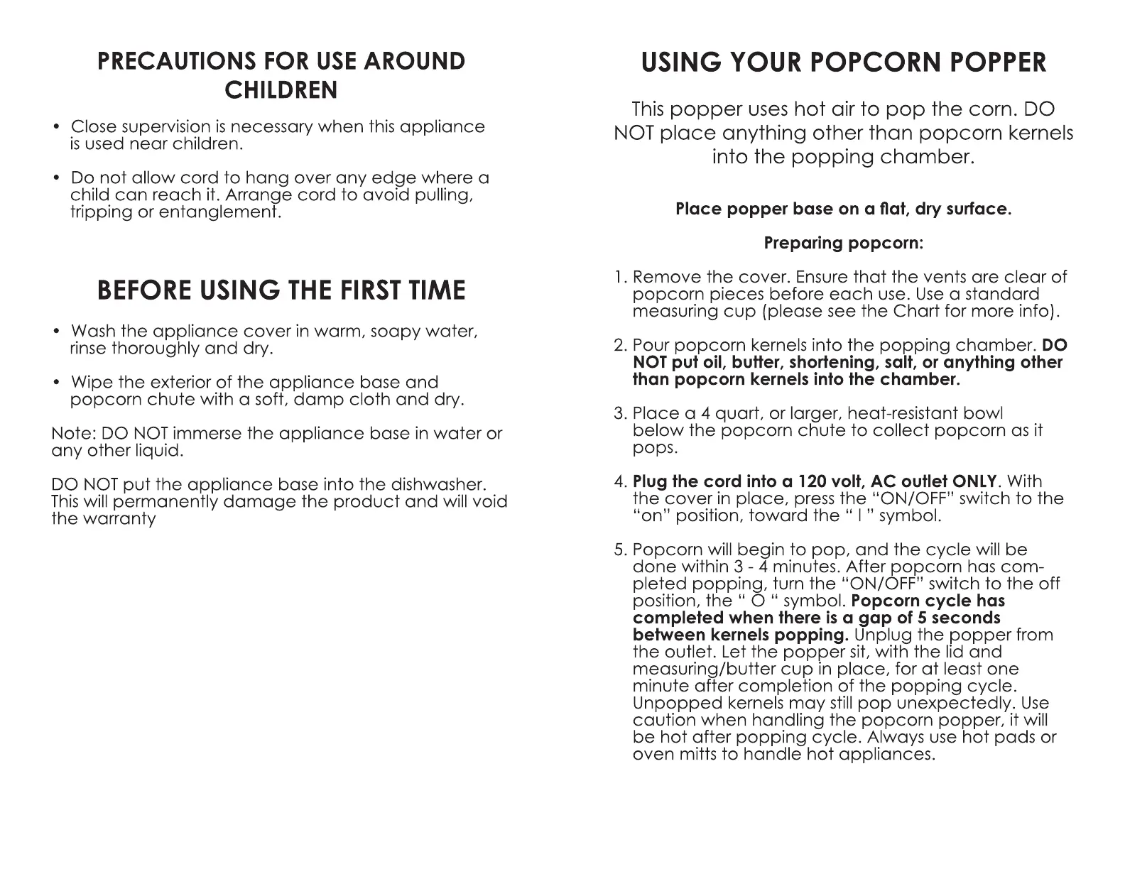 Smartplanet MTP-1 - Precautions for Use Around Children; Before Using the First Time; Using Your Popcorn Popper; Preparing Popcorn