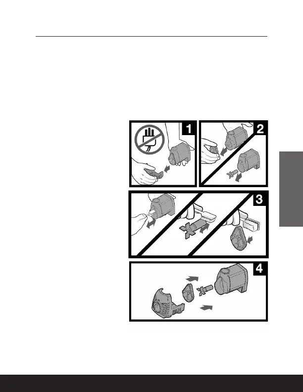 fuente de alimentación y retire la cubierta de la bomba.