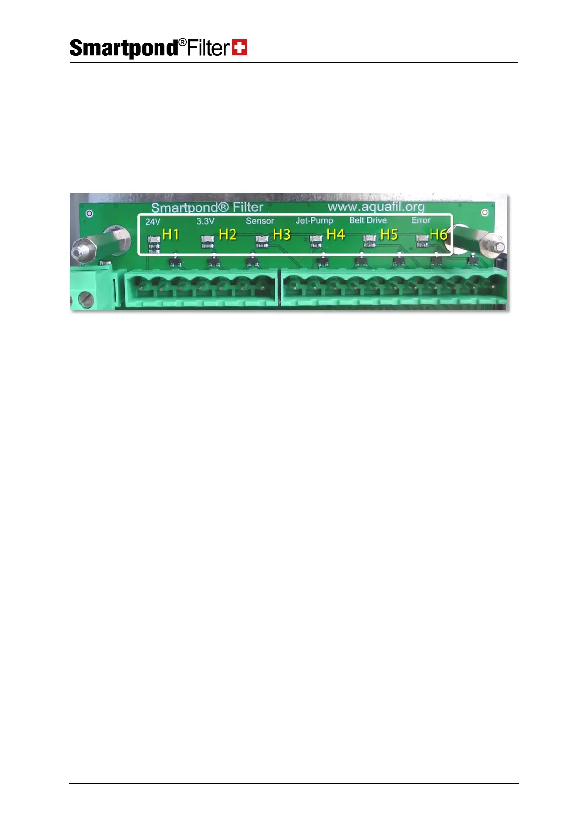 On the control unit circuit board, several LEDs (H1-H6) are available for