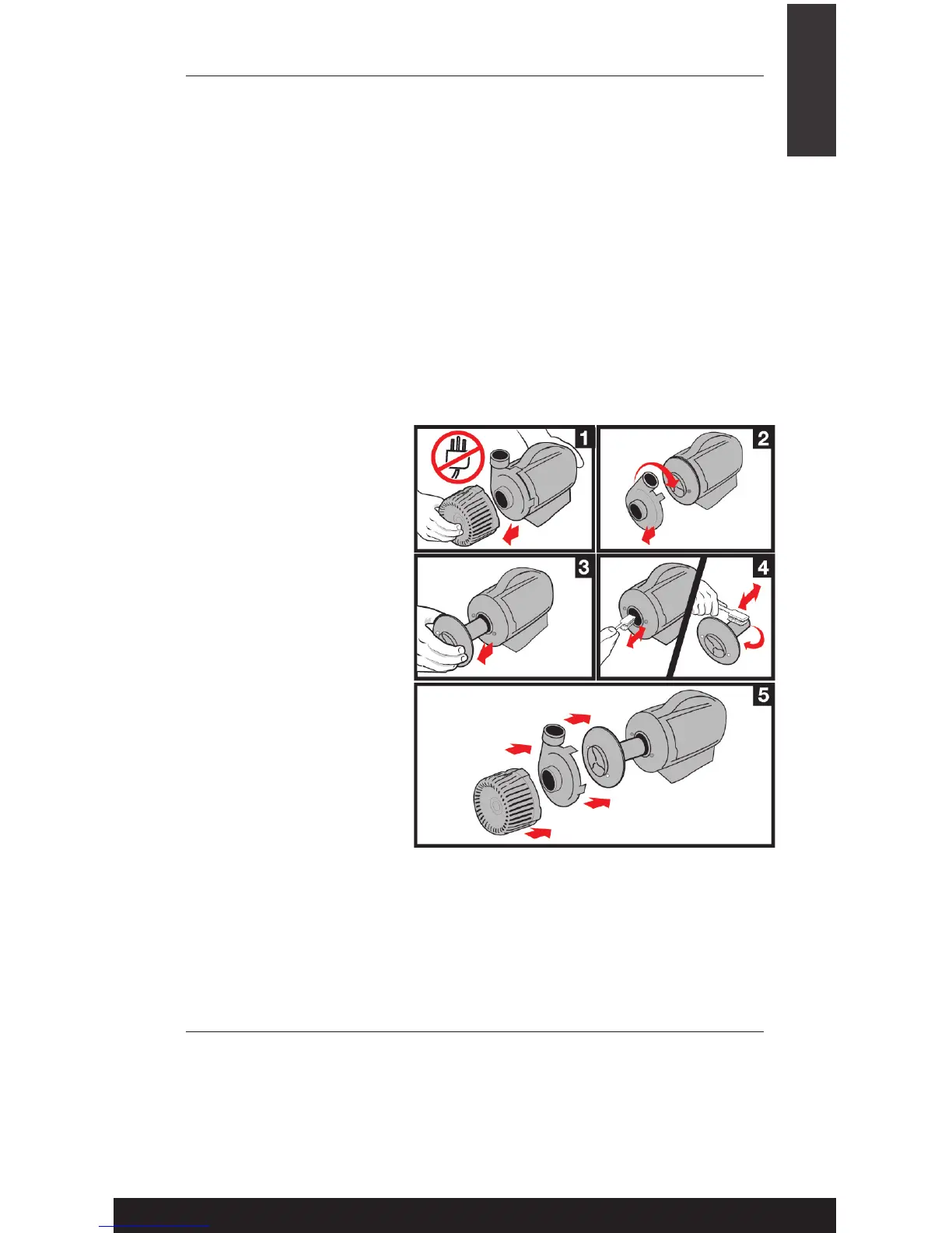 • Before cleaning, always disconnect the pump from the power source.