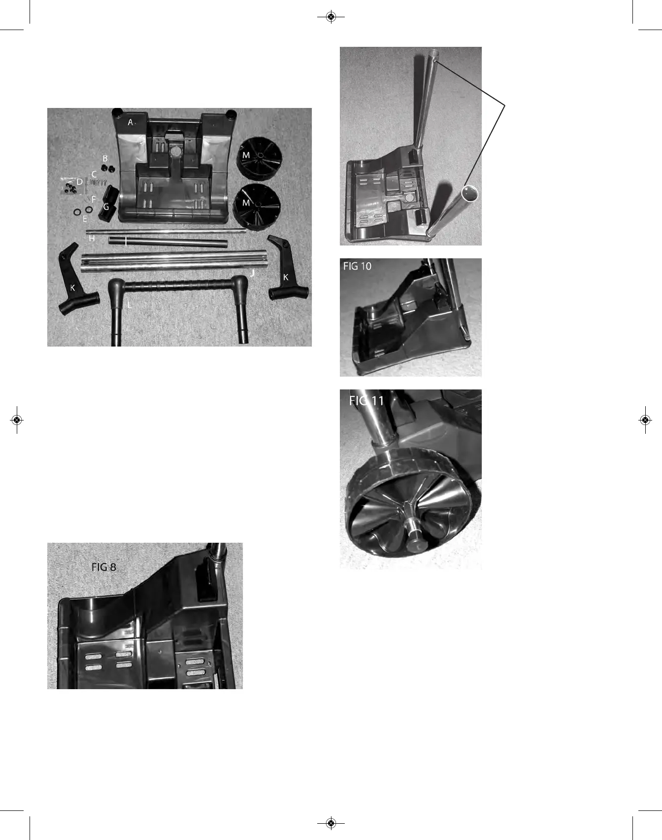 • Installez les poteaux du chariot dans la base, l'extrémité comportant les gros trous