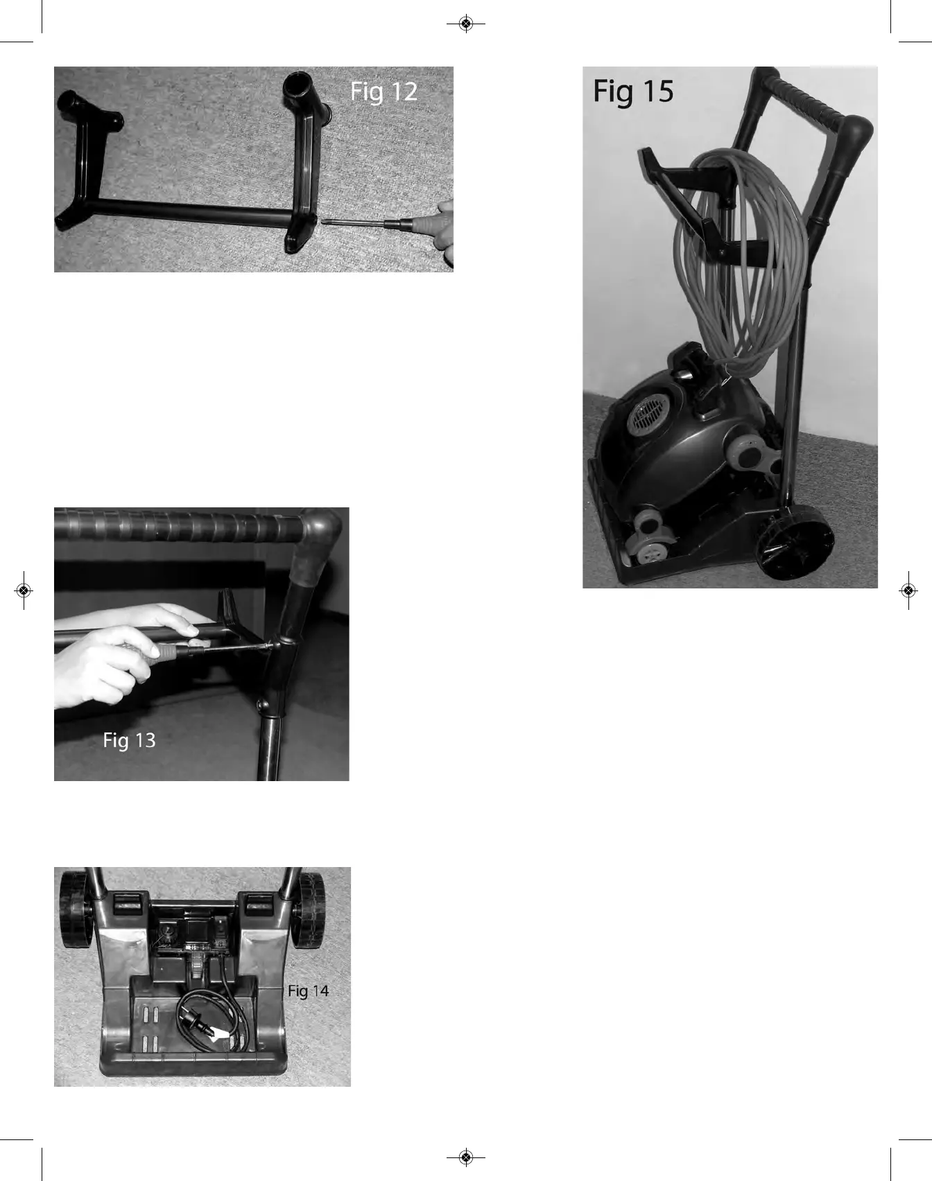 • Posez le nettoyeur sur le chariot, les roulettes orientées vers l'avant et vers le bas. Les