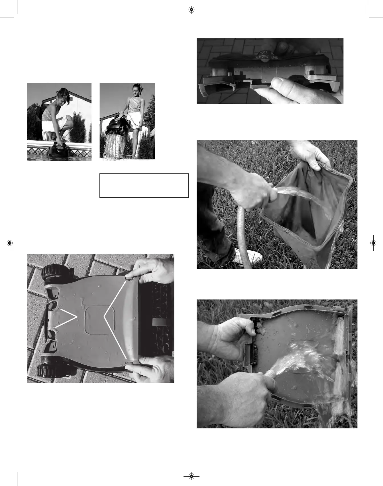 • Turn filter bag inside out and hose off all debris as shown in Fig 5. If very dirty it may