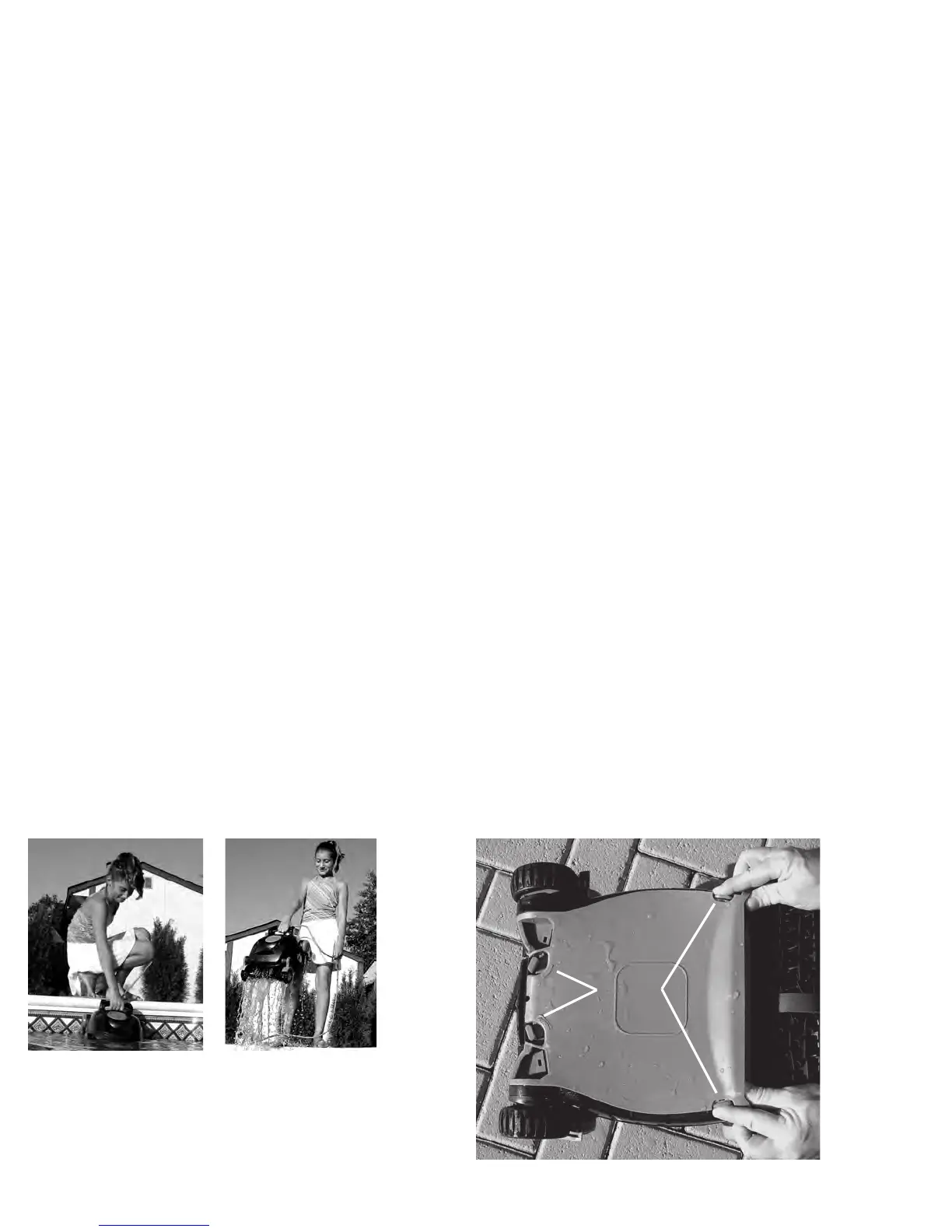 • Place the cleaner into the pool and if needed rock the cleaner side to side to release any trapped air. The cleaner will sink to the bottom of the pool.