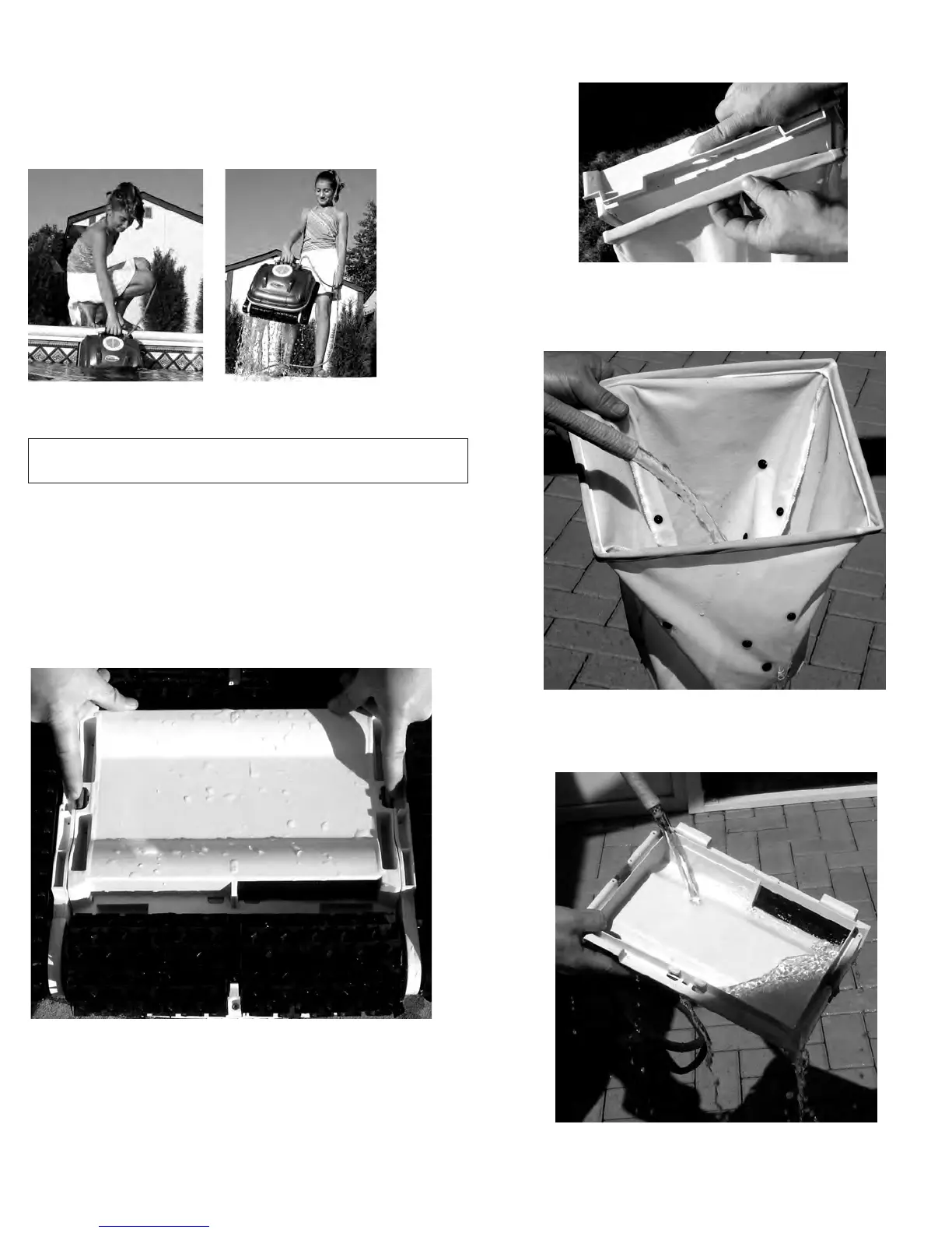 • Retournez le sac à filtre et nettoyez les débris à l'aide d'un jet d'eau tel qu'indiqué à l'image 5.