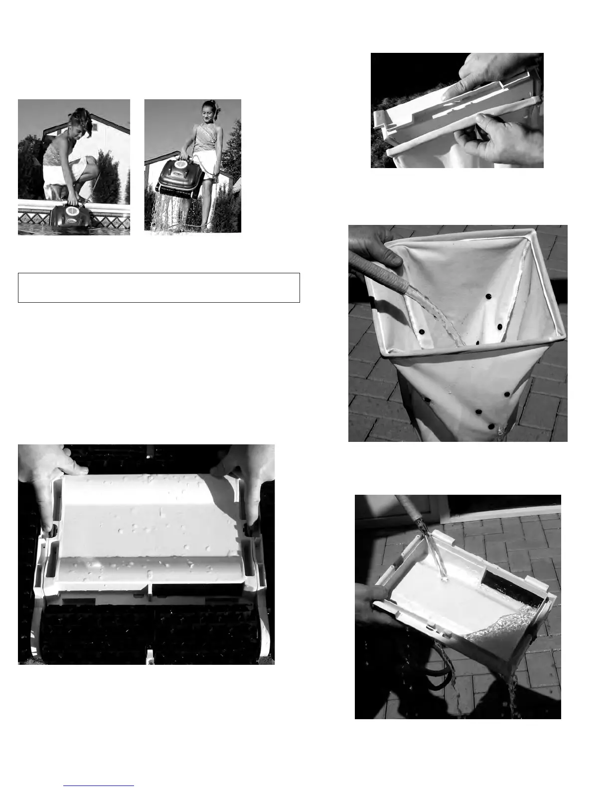 • Vire al revés la bolsa del filtro y lávela con el chorro de agua de la manguera hasta eliminar