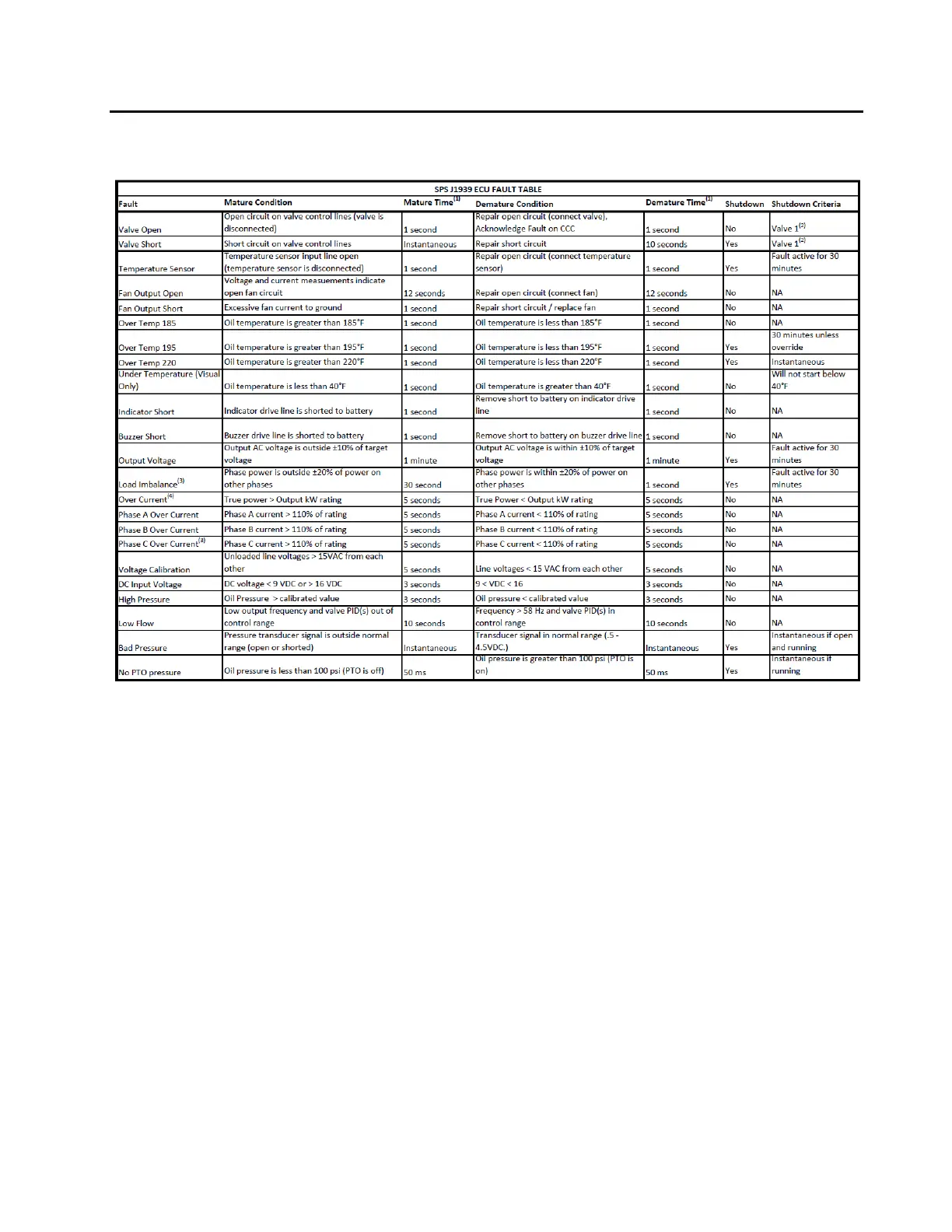 The complete list of faults, including conditions and times may be found in Table 4, below.