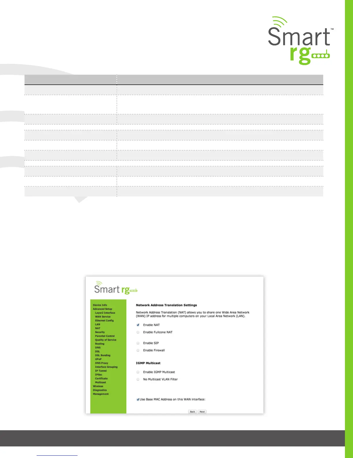 * For additional info see the SmartRG Support site’s knowledgebase.