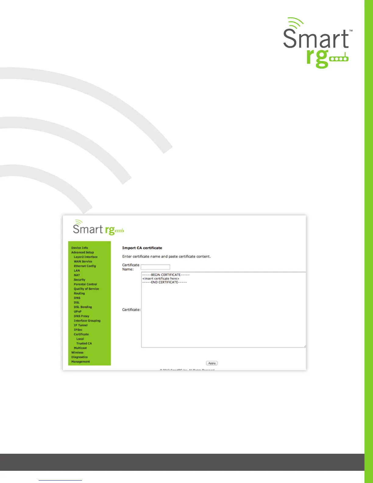 SmartRG Inc. Propriety and Condential. All Rights Reserved. Copyright © 2014 smartrg.com