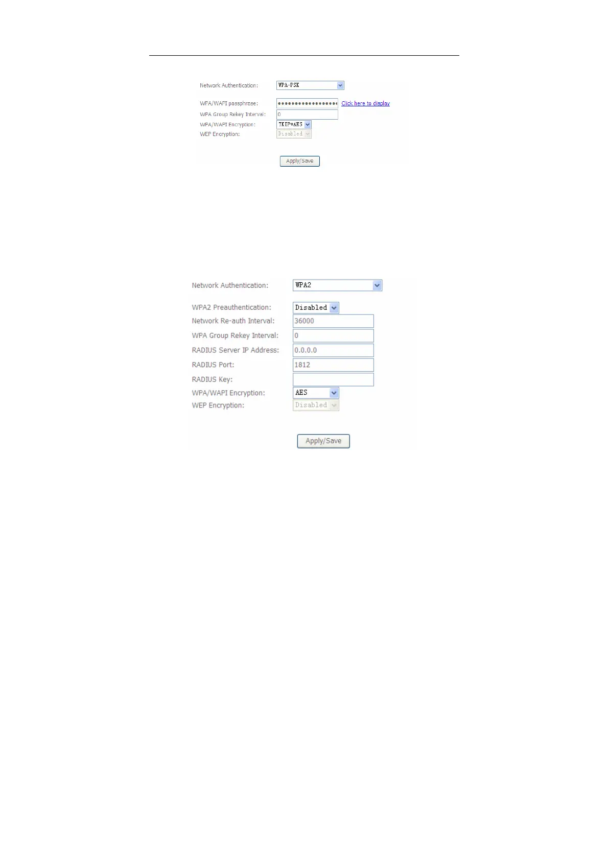 WPA/WAPI passphrase: The key for WPA encryption. Click the Click here