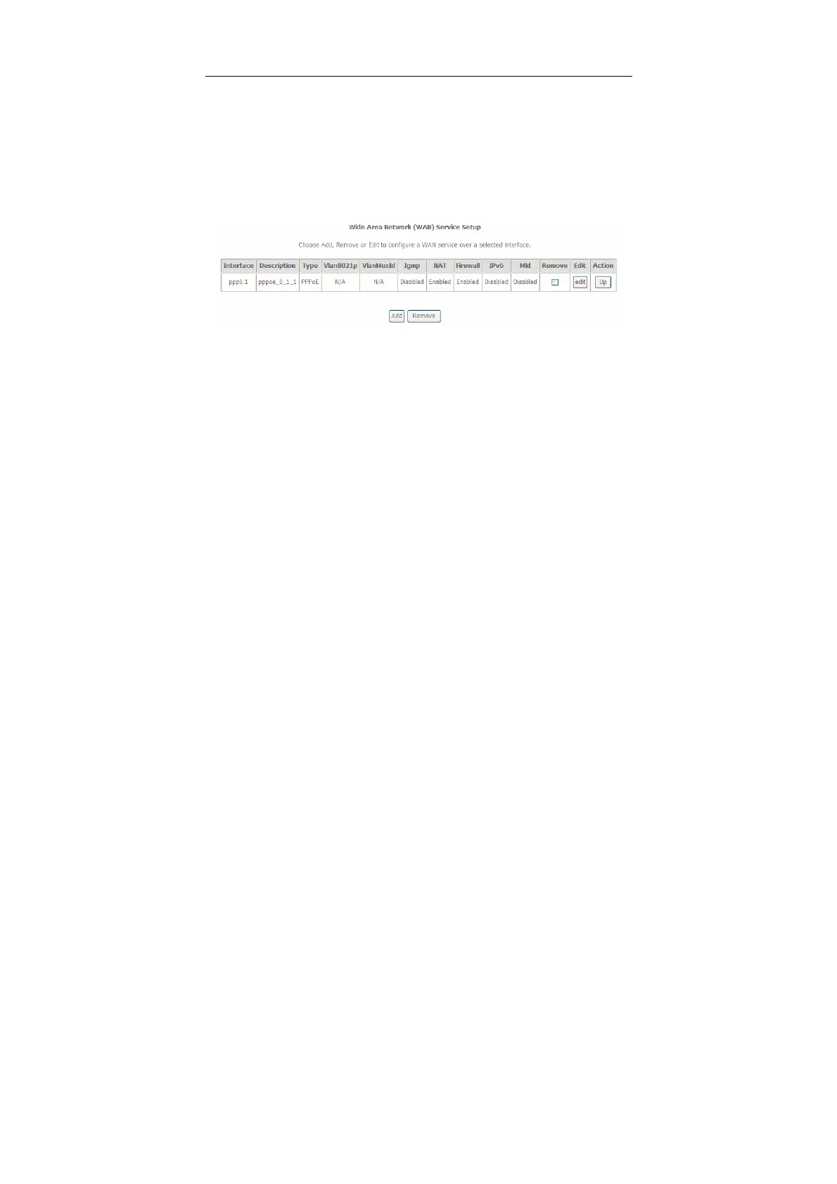 In this page, you are allowed to add, remove, or edit a WAN service.