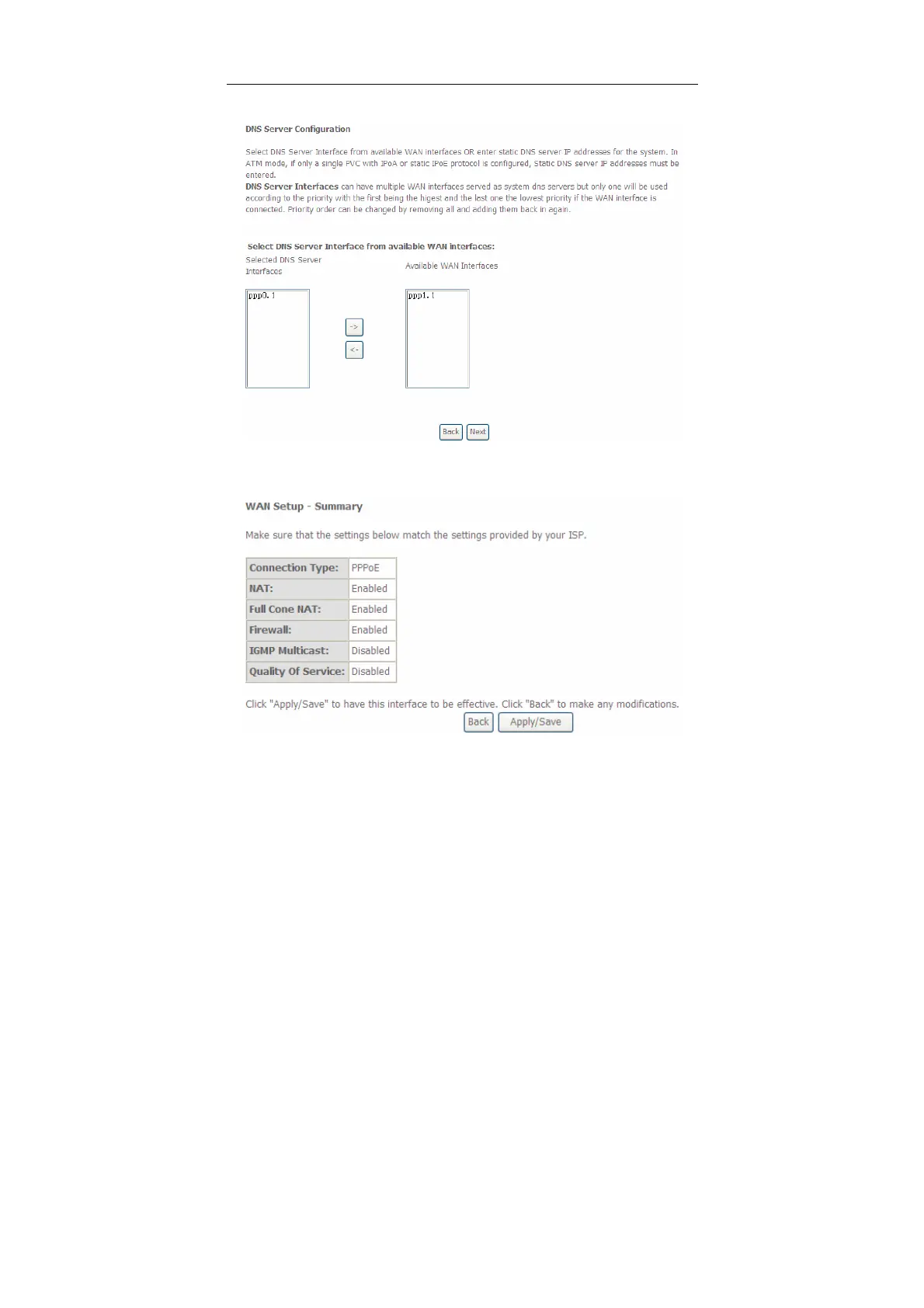 WAN interface. Click Next, and the following page appears.