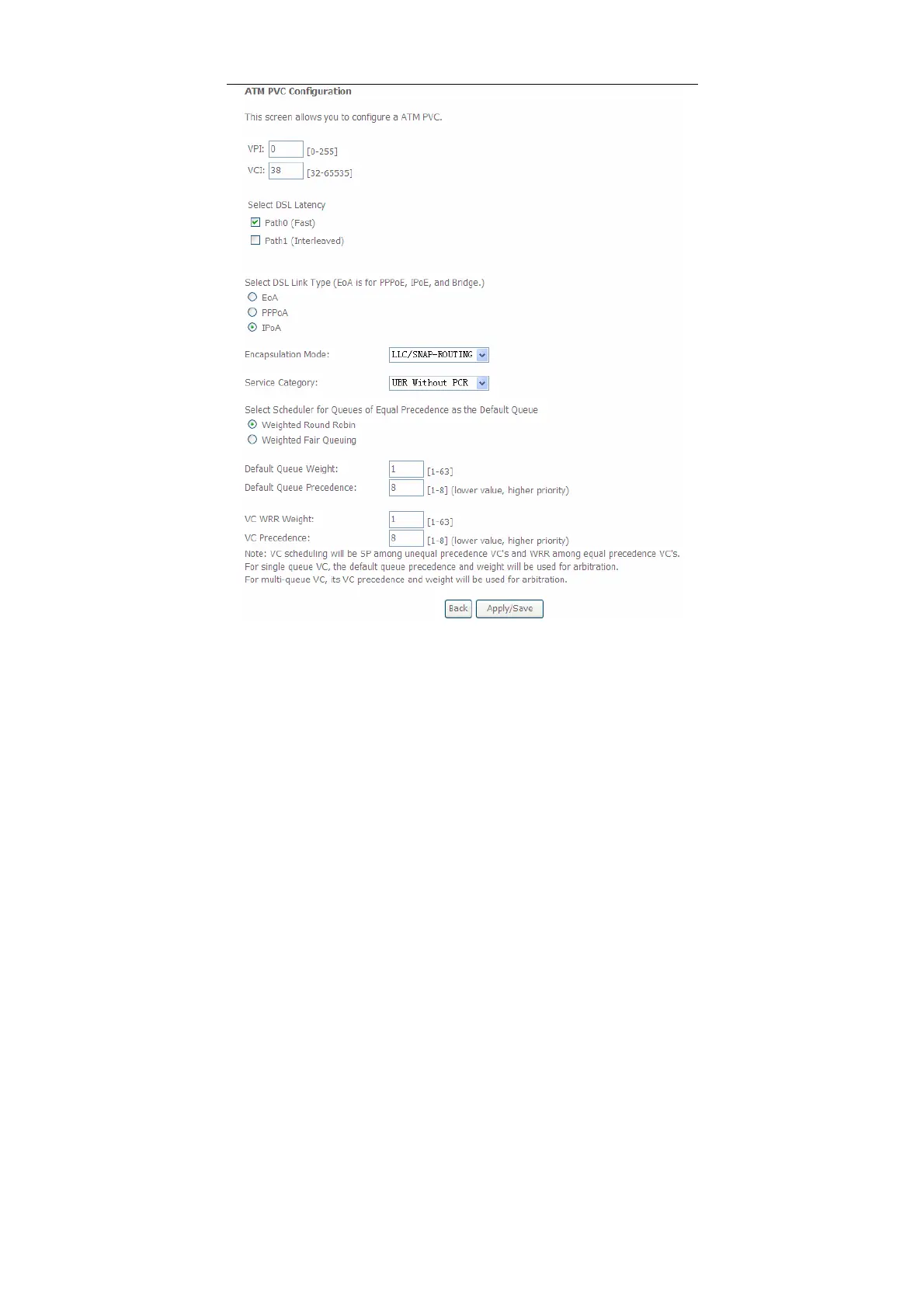 Step2 Select the DSL link type to be IPoA, and select the encapsulation mode