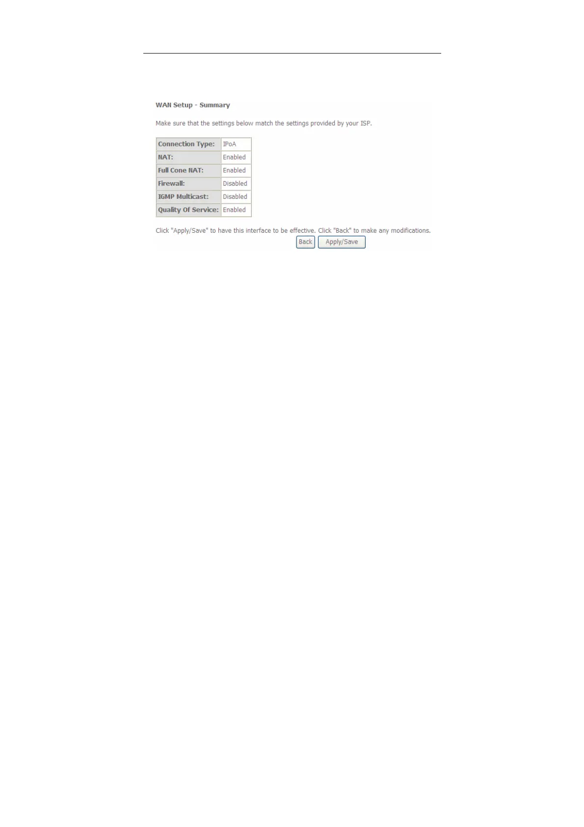 Step10 In this page, it displays the information about the IPoA settngs. Click
