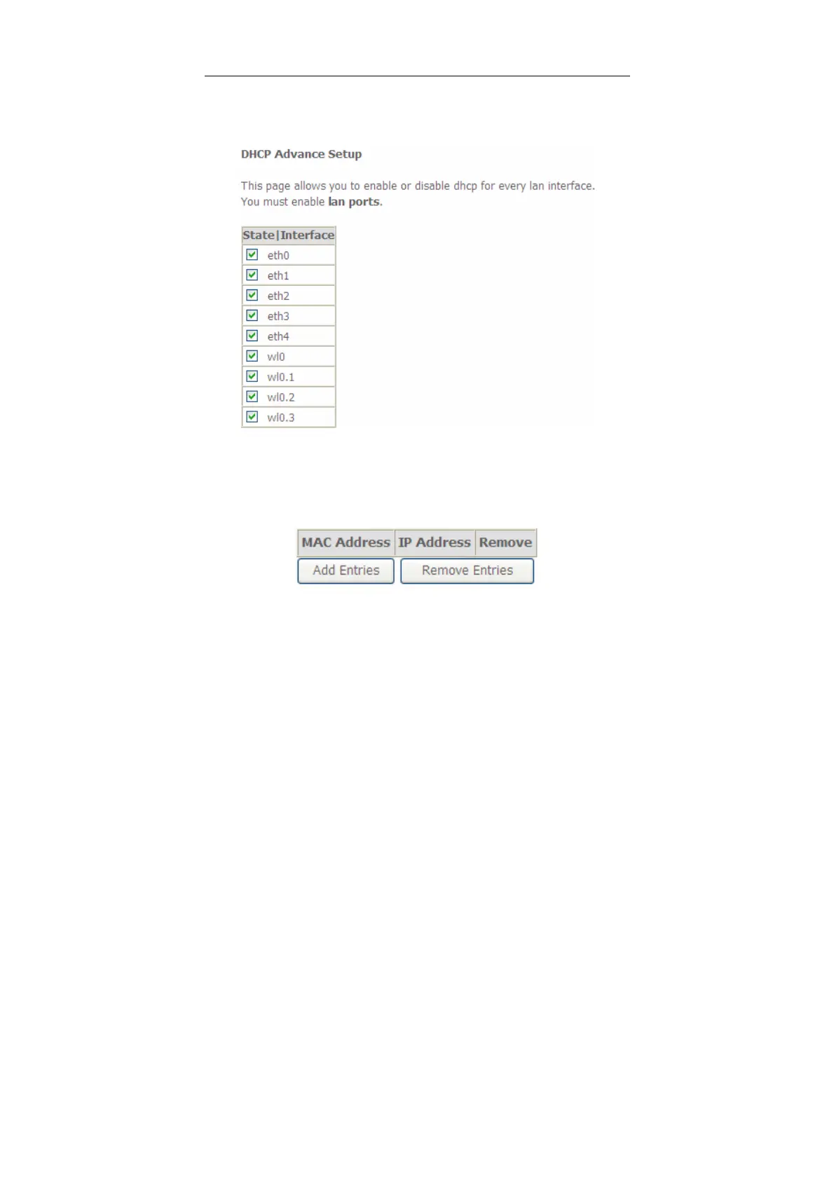 The lease list of static IP address can reserve the static IP addresses for the hosts