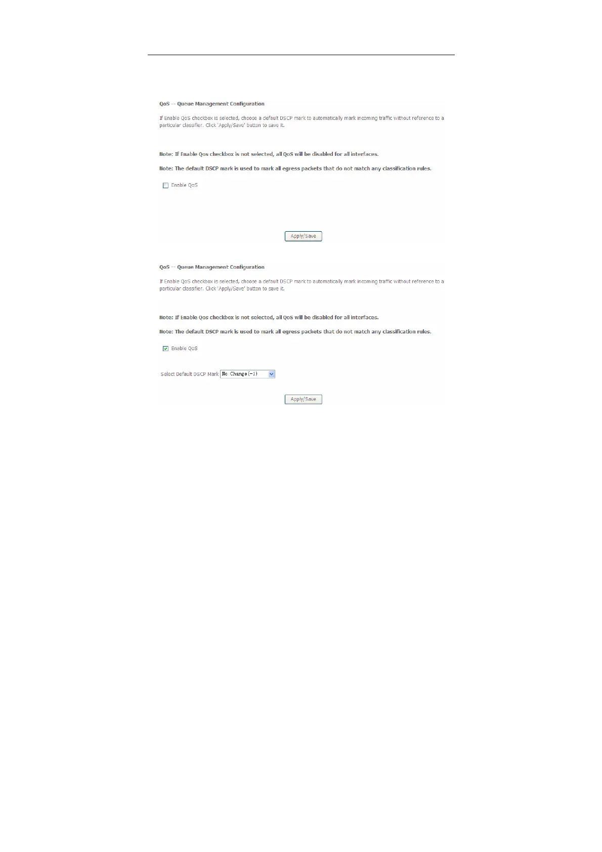 In this page, enable the QoS function and select the default DSCP mark.