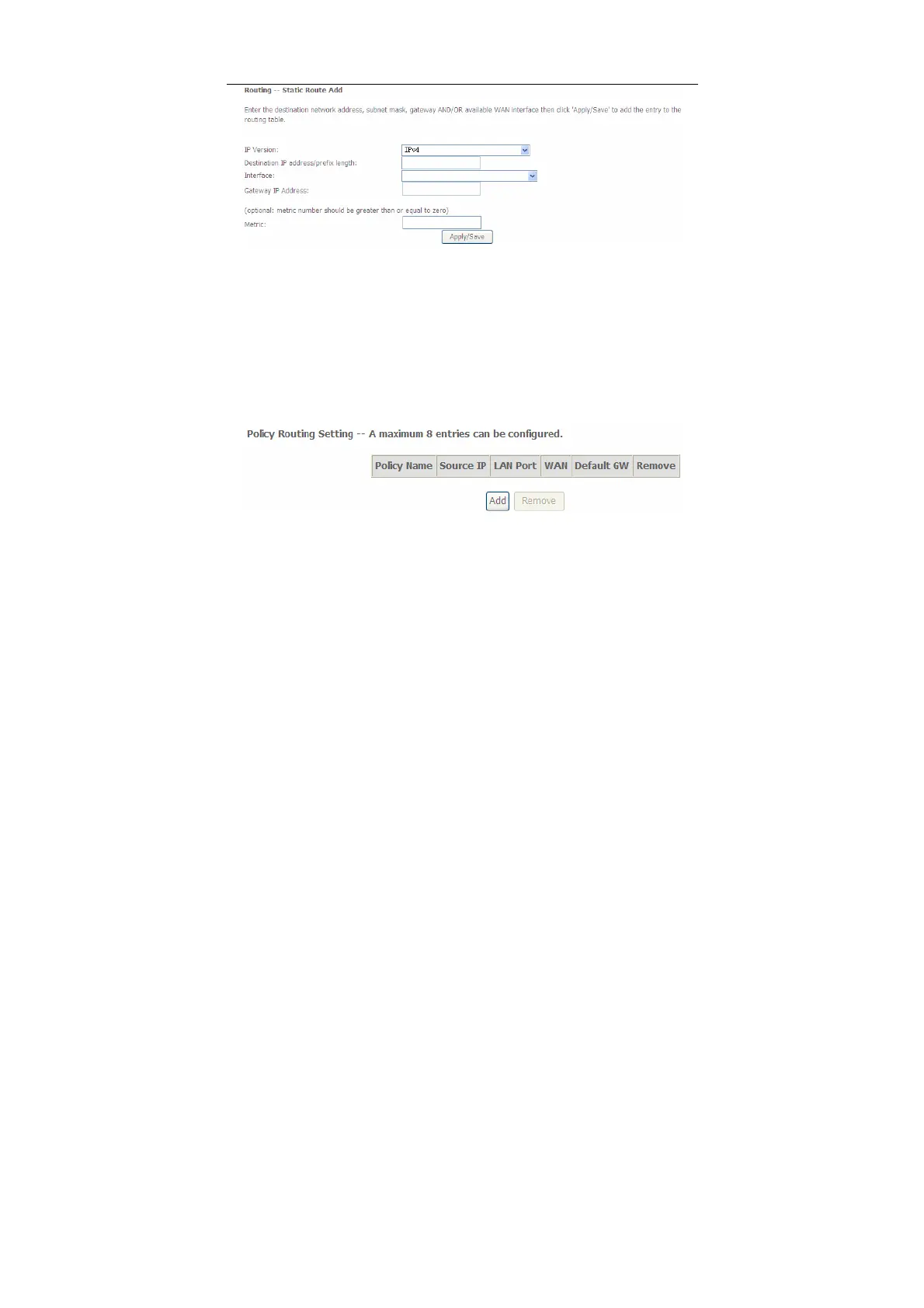 Choose Advanced Setup > Routing > Policy Routing and the following page