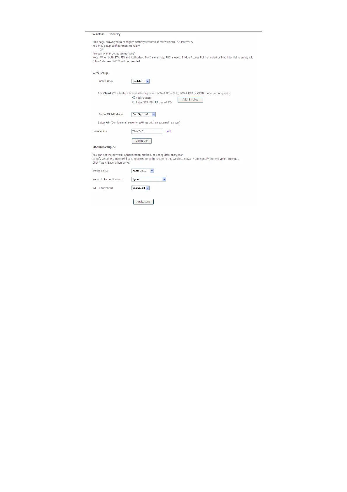 interface. In this page, you can configure the network security settings by the Wi-Fi